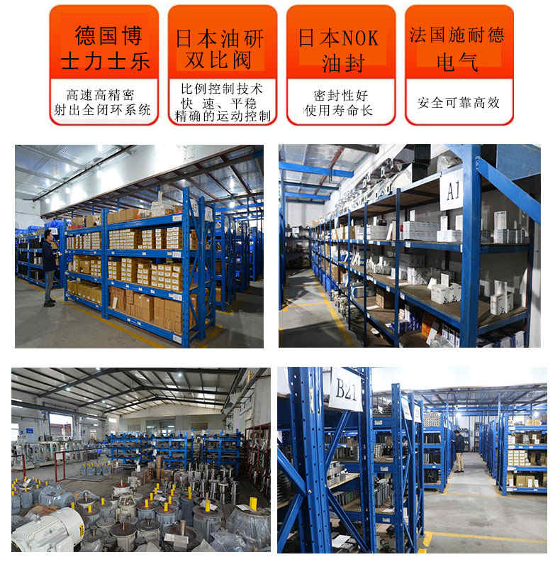 1、立式鎖模,立式射出,四工位轉盤可以120度、240度、360度旋轉,